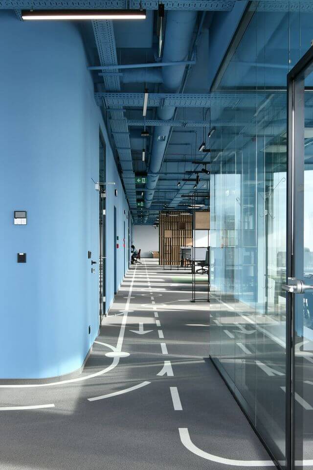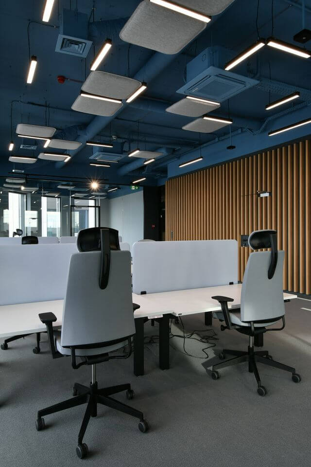 Wnętrze łączy reprezentacyjność z codzienną użytecznością. Przestrzenie wspólne sprzyjają integracji zespołu, a strefy pracy zapewniają odpowiednie warunki do koncentracji.